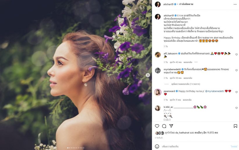 “อั้ม อธิชาติ ชุมนานนท์” ได้โพสต์รูปพร้อมแคปชั่นว่า “6 ก.พ. ฤกษ์ดีวันเก็ดเปิด เด็กระเบิดครบรอบสี่สิบกว่า ขอให้สวยให้ใสข้ามเวลา ขอให้สารักล้นทุกนาที ขอให้มีความสุขเหมือนเด็กเป็ด ให้สำเร็จทุกสิ่งที่มั่นหมาย