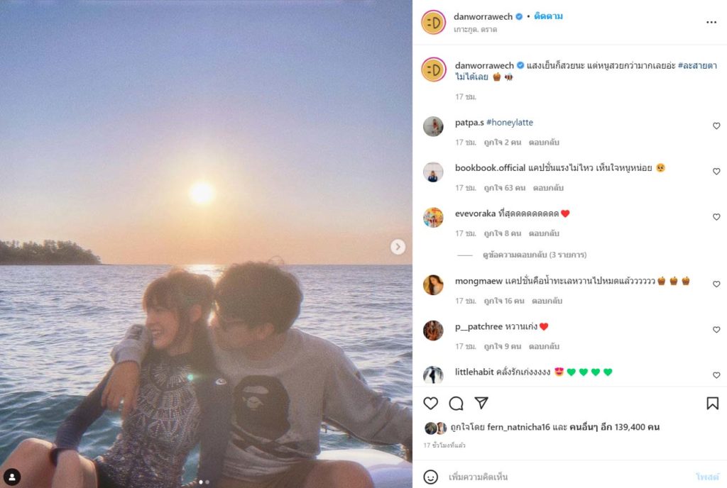 ล่าสุด แดน-แพทตี้ ควงคู่กันไปเที่ยวพักผ่อนไกลถึง เกาะกูด. ตราด พร้อมเผยโมเมนต์น่ารัก ๆ แซวแฟนกลางไอจีว่า แสงเย็นก็สวยนะ แต่หนูสวยกว่ามากเลยอ่ะ #ละสายตาไม่ได้เลย งานนี้ด้านสาวแพทตี้ เข้ามาคอมเมนต์ทันทีว่า ‘เอาหัวใจไป1ดวง’
