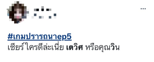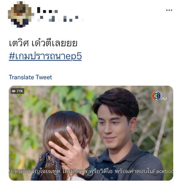 “ผมขอบคุณมากจริง ๆ ครับ ที่แฟนละครชื่นชอบตัวละคร ‘เตวิศ’ ไม่คิดว่าทุกคนจะอินกันขนาดนี้(หัวเราะ) เกมปรารถนายังมีความสนุกให้ผู้ชมได้เดากันอีกเยอะครับ คุณจะตื่นเต้นกับบทเรื่องนี้ บทดีมาก มันส์มาก มันจะไม่เหมือนละครทั่วไป เรื่องนี้คุณจะสนุกในการเดา คุณจะสนุกในการดู ผมชอบเรื่องนี้มากอยากให้ดูกันจริงๆ ทั้งผู้จัด ผู้กำกับ นักแสดงทุกคน เราช่วยกันขยี้บทจนสุดทางจริง ๆ”
