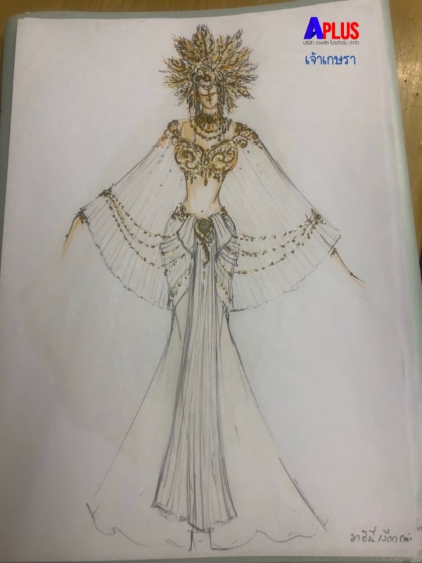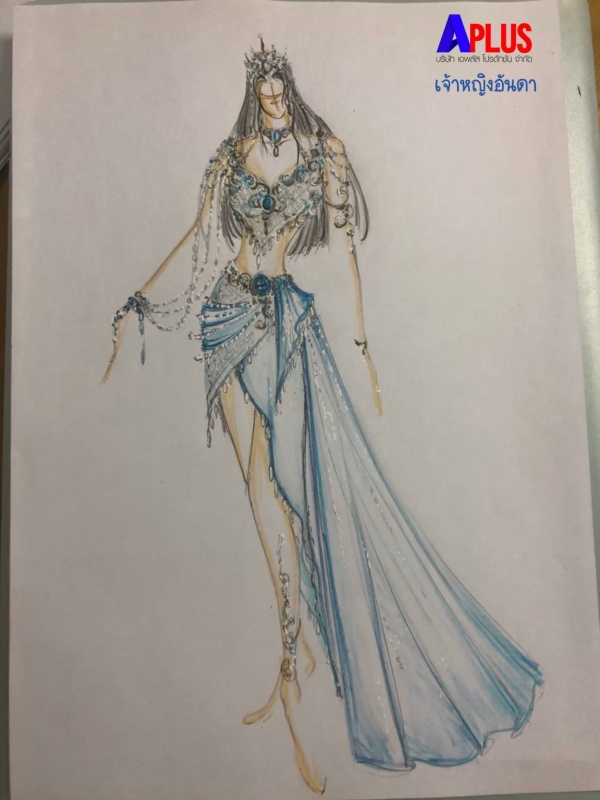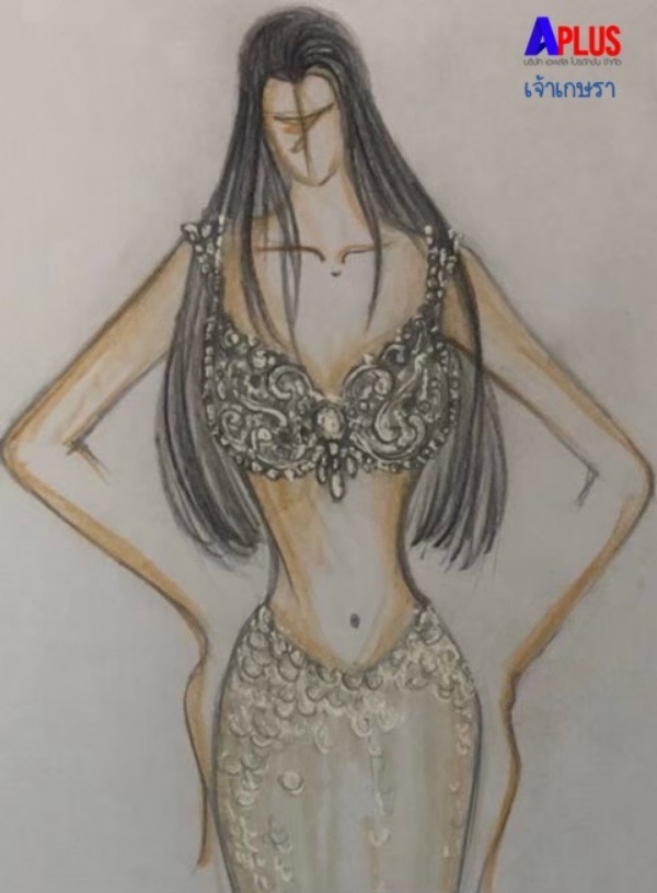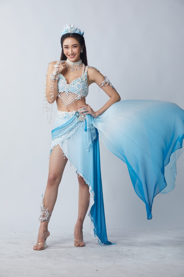 ต่อด้วยชุดราชินีเงือกอย่าง “ต่าย-ชัชฎาภรณ์ ธนันทา” ราชินีเงือกมาในชุดสีขาวทอง สื่อถึง นิสัยอันอ่อนโยน จิตใจดี รักในความยุติธรรมชอบ แถมเป็นราชินีเงือกในอุดมคติตามบทบาทที่เกิดขึ้นในเรื่อง ถึงแม้จะเป็นสีขาวที่บริสุทธิ์ก็ยังมีประดับสีทองอร่ามตาด้วยมงกุฎ เครื่องประดับสีทองบ่งบอกถึงความเป็นใหญ่ มั่งคั่ง ภูมิฐาน ทำให้รอบข้างสว่างสดใส ด้วยพลังงานที่ดี เหมาะที่จะเป็นราชินีที่สุด