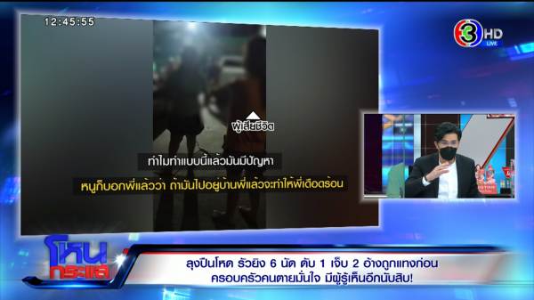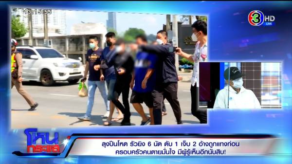เอก : อยากให้ตร.ดำเนินการให้ถึงที่สุด เพราะผมก็ไม่แน่ใจว่ามันเป็นเรื่องจริงหรือเปล่า เขาบอกเหมือนเป็นขาใหญ่แถวนั้น แต่ผมไม่ได้คอนเฟิร์มว่าจริงหรือเปล่า แต่คนแถวนั้นเขาบอกว่าเป็นขาใหญ่ ปล่อยเงินกู้ เขารู้จักดี ผมก็อยากให้ดำเนินการให้ถึงที่สุด น้องเราเสียชีวิตไปแบบนี้ มันกะทันหัน มันรับไม่ได้ ยิ่งมาเห็นว่ายิงขนาดนี้ คุณไม่มีลูกเลยเหรอ คุณเป็นผู้ชายพอเหรอ เขาเป็นผู้หญิงคุณไปยิงซ้ำเขาขนาดนั้น พอเห็นเขาล้มคุณยังยิงซ้ำที่หัว คุณกะเอาตายแน่ๆ คุณไม่ใช่ลูกผู้ชาย แล้วทำไมให้การว่าคุณจะไปหาหมอ คุณโดนแทง นี่คือคนจะไปหาหมอแล้วโดนแทงเหรอ อันนี้มันไม่ใช่ ผมว่าคุณเตรียมมาแล้ว แต่คุณจะเตรียมมากี่นัดแค่นั้นเอง เจตนาแน่ๆ ครับ จะบอกว่าคุณไปหาหมอ แล้วบังเอิญไปเจอ มันเป็นคำพูดคนไม่ได้เสียชีวิต คนเสียชีวิตเขาพูดไม่ได้ แต่การกระทำในคลิปมันบอกหมดครับ เราฟังจากเด็กๆ ก็เป็นตามคลิปเลย เรื่องไม่เป็นเรื่องเลย