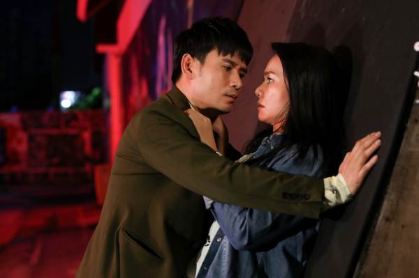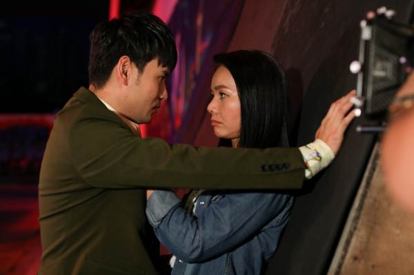 เป็นฉากที่ เจ้ย(ต่าย) กำลังมีเรื่องกับแก๊งเจ้าหนี้นอกระบบ เมื่อเห็นว่าสู้ไม่ไหว เจ้ยก็หาทางหนี หมวดเคน(ไผ่) ที่อยู่ใกล้ ๆ เห็นต่ายร้องขอความช่วยเหลือ จึงรีบวิ่งตามไปช่วยทันที ซึ่งเบื้องหลังก่อนถ่ายทำ งานหนักจะตกไปอยู่ที่ต่ายซะส่วนใหญ่ เพราะจะต้องบู๊สู้ฟัด และยังต้องเสียจูบให้ไผ่อีก โดยเฉพาะช๊อตจูบ ผู้กำกับ ตั้ม-บรรเจิด เข้าไปบอกกับต่ายว่าอยากให้เล่นจริง เพราะอยากให้ภาพออกมาไม่หลอกตา ก็ทำเอาสาวต่ายแอบเหงื่อตกเบา ๆ แต่ก็ยอมเล่นจริง เพราะก็อยากให้ภาพละครออกมาสวยงามเช่นกัน