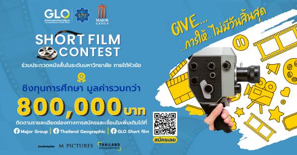 สำนักงานสลากกินแบ่งรัฐบาล ร่วมกับ เมเจอร์ ซีนีเพล็กซ์ กรุ้ป เปิดโอกาสให้นักศึกษาที่มีใจรักหนังสร้างสรรค์ผลงานผ่านภาพยนตร์สั้นในคอนเซ็ปท์ “GIVE: การให้…ไม่มีวันสิ้นสุด” ภายใต้โครงการ GLO Short Film 2022 เปิดรับสมัครตั้งแต่วันนี้-11 มีนาคม 2565