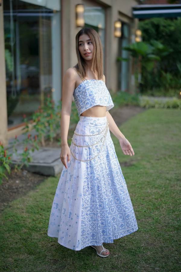 ดิษยา สรไกรกิติกูล เผยที่มาของคอลเลกชั่นล่าสุดว่า เล่าเรื่องราวความสุนทรียะของเมือง Positano ผ่านลายผ้าที่ได้แรงบันดาลใจมาจากโรงแรม Le Sirenuse ออกมาเป็นลายนางเงือกผสมผสานสัตว์ทะเลนานาชนิดผ่านเทคนิคการวาดสีน้ำสีสันสดใส อีกหนึ่งสิ่งที่สะดุดตามาก ๆ ก็คือ Ceramica Assunta ร้านเครื่องเคลือบดินเผาที่มีเอกลักษณ์เฉพาะตัวของเมืองนี้ จนเกิดเป็นแรงบันดาลใจของลายกระเบื้องเคลือบโทนสีฟ้า-ขาวในคอลเลกชั่น รวมถึงการหยิบเอาเสน่ห์ต่าง ๆ ของชุดยูนิฟอร์มนักเดินเรือเข้ามาใช้ในคอลเลกชั่นนี้ด้วย ทั้งปกใหญ่สไตล์กะลาสีเรือ การใช้กระดุมสีทองเด่น ลาย Stripe สีขาวสลับน้ำเงินและแดงที่ถ่ายทอดออกมาผ่านการตัดต่อผ้าลูกไม้สลับสี และการวางแถบลูกไม้ลงไปบนผ้าสีพื้นเพื่อให้เกิดเป็นลายทาง และผ้า Jacquard ลายทางที่มีโทนสีน่าสนใจเช่นกัน