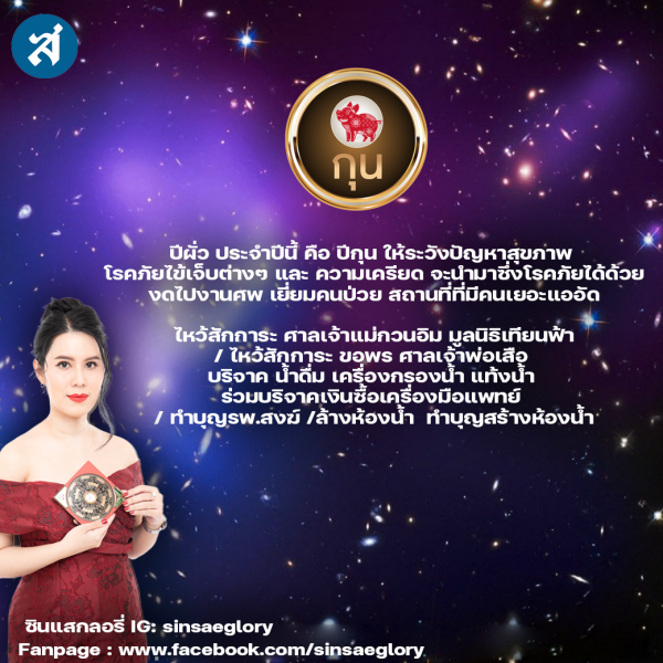 ปีผั่ว ประจำปีนี้ คือ ปีกุน ให้ระวังปัญหาสุขภาพ โรคภัยไข้เจ็บต่างๆ และ ความเครียด จะนำมาซึ่งโรคภัยได้ด้วย