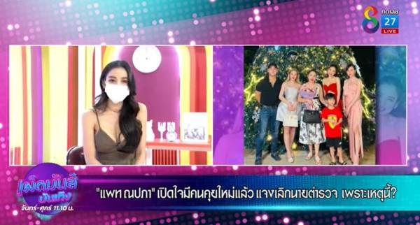 กลับมาเปิดใจเป็นครั้งแรก อีกครั้ง ในรายการ “เผ็ดมันส์บันเทิง” ช่อง 8 วันนี้สำหรับ คุณแม่สาวสวยสายสตรองอย่าง “แพท ณปภา” กับฉายา “แพท 8G” มาเปิดใจกับ “แอนนา” พิธีกรแบบหมดเปลือก ถึงสาเหตุของการเลิกกับนายตำรวจหนุ่ม พร้อมเผยเห็นคุณตำรวจในไอจีว่ามีคนคุยใหม่แล้ว ตั้งแต่วันที่ 14 กุมภาพันธ์ แถมฝ่ายชายยังแท็กฝ่ายหญิงด้วย ส่วนตัวเองก็มีคนเข้ามาคุยเรื่อย แต่ขอเป็นแบบ “ฟิลแฟน” คือคนสนิทที่ไม่ใช่แฟน