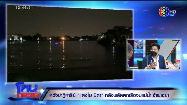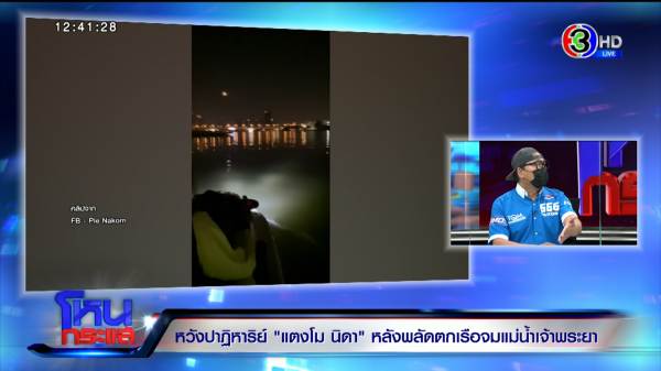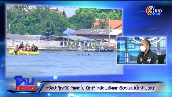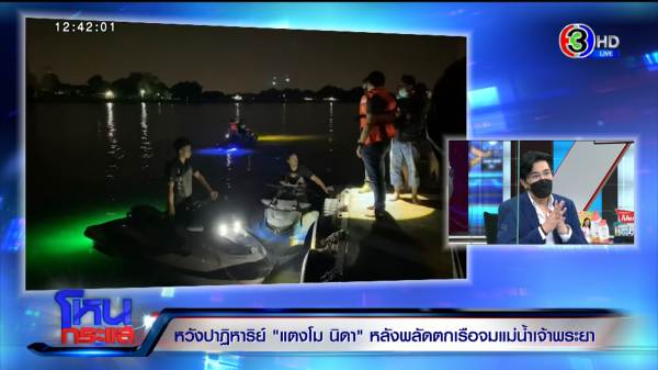 รายการโหนกระแสวันที่ 25 ก.พ. 65 ดำเนินรายการโดย “หนุ่ม กรรชัย กำเนิดพลอย” ผลิตในนามบริษัท ดีคืนดีวัน จำกัด ออกอากาศทุกวันจันทร์-ศุกร์ เวลา 12.35 น. ทางช่อง 3 กดเลข 33 สัมภาษณ์ เปิ้ล นาคร, จอม, อ้น ทีมที่ลงไปค้นหาเมื่อคืนจนถึงเช้า, บอล ธนกฤต ที่ช่วยค้นหา และเป็นเจ้าของอู่เรือ