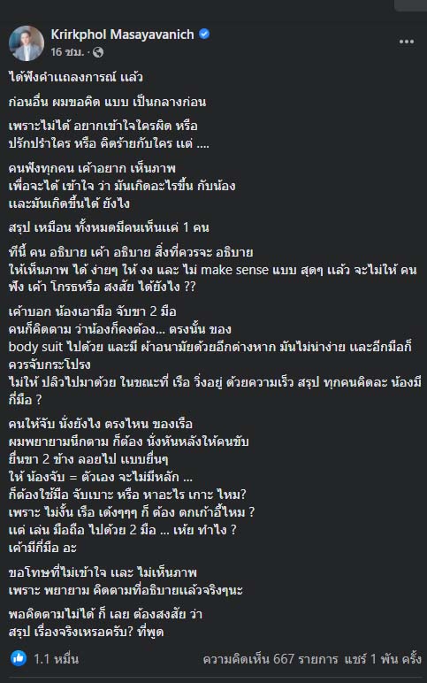 ก่อนอื่น ผมขอคิด แบบ เป็นกลางก่อน เพราะไม่ได้ อยากเข้าใจใครผิด หรือปรักปรำใคร หรือ คิดร้ายกับใคร เเต่คนฟังทุกคน เค้าอยากเห็นภาพเพื่อจะได้ เข้าใจว่า มันเกิดอะไรขึ้นกับน้อง เเละมันเกิดขึ้นได้ยังไง