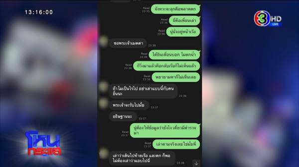 หลังโมตกไป 1 ชม. คุณพูดว่าโมไปฉี่กับคนที่คุณขอความช่วยเหลือ คุณบอกว่าเพื่อนเล่าว่าจังหวะลุกขึ้นแล้วพลาดตก ขอพระเจ้าเมตตา คุณนั่งอยู่หน้าเรือ กลับเรือมาไม่ทันแล้ว พยายามหาก็ไม่เห็นเลย ถ้าโมเป็นอะไรไป อย่าเล่าแบบนี้กับคนอื่น ต้องให้ข้อมูลว่ายังไง ให้เล่าว่าเดินไปท้ายเรือแล้วตกก็พอ ไม่ต้องเล่าว่าแอบไปฉี่ นี่คืออะไร?