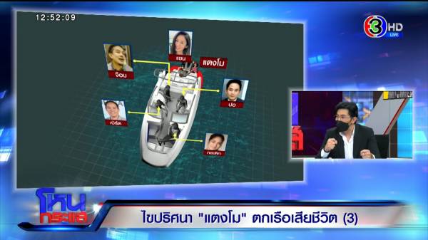 เดชา : จริง ๆ มีคนตกเรือตาย จริง ๆ ไม่มีอะไร แต่ที่เป็นกระแสเพราะเป็นดาราดัง สองพอเกิดเหตุ มีพฤติกรรมคนในเรือ ไม่ทำเหมือนวิญญูชนทั่วไป ปกปิดอะไรต่าง ๆ ไม่พบตร. ไม่ให้ข้อมูลต่างๆ ยิ่งทำให้คนอยากรู้ มีอยู่แค่นี้