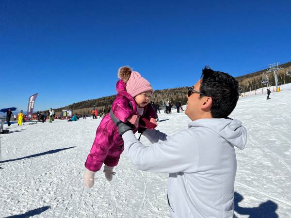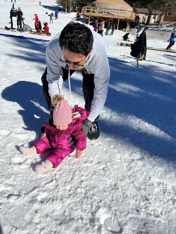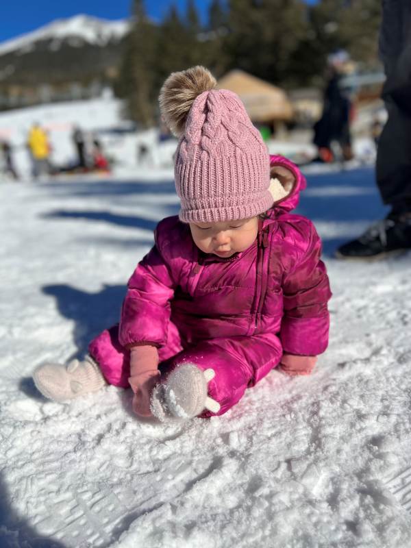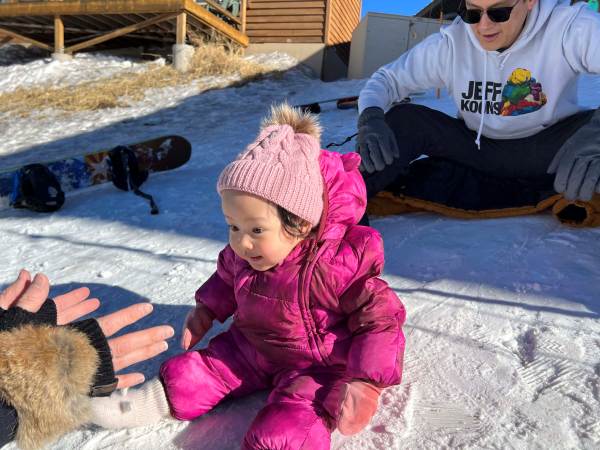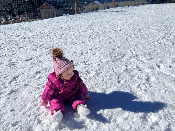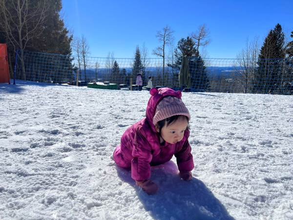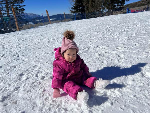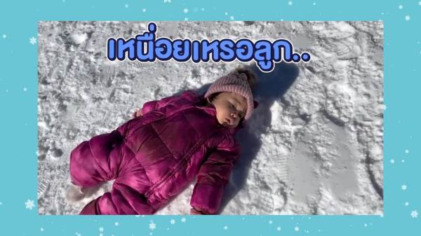 งานนี้จับแต่งตัวให้อย่างมิดชิด เสื้อกันหนาว ถุงเท้า ถุงมือ หมวกพร้อม เผยให้เห็นแค่ใบหน้ากับรอยยิ้มและเสียงหัวเราะ เพราะเพลิดเพลินกับการเล่นสไลเดอร์หิมะสุด ๆ แถมยังนอนกลิ้ง คลานเล่นบนหิมะอย่างสบายใจ หนาวมั้ยไม่รู้แต่หนูสนุก สู้ตายมากค่ะ