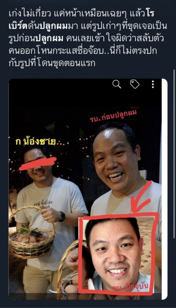 ด้าน หนุ่ม กรรชัย เผยภาพ โรเบิร์ต ขณะแอดมิตโรงพยาบาลมาเทียบในรายการเที่ยงวันทันเหตุการณ์ พร้อมกับเปิดเผยว่า คุณโรเบิร์ต เพิ่งไปปลูกผมมา 6 เดือน หากภาพที่ไม่มีผมเป็นภาพเก่าก่อนปลูกผม ส่วนคุณเก่ง ศีรษะด้านหน้ายังไม่มีผมอยู่
