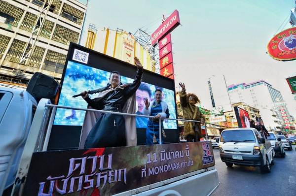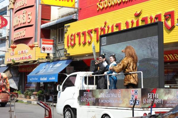 โดยมี คุณหทัยทิพย์ หมัดจุ้ย ผู้อำนวยการธุรกิจดูหนังออนไลน์ บริษัท โมโน สตรีมมิ่ง จำกัด หรือ MONOMAX (โมโนแมกซ์) ในเครือโมโน เน็กซ์ ถือฤกษ์ดีเป็นประธานปล่อยขบวณรถแห่ ซึ่งเริ่มต้นขบวนความสุขจากศาลเจ้าพ่อจุ้ยตลาดบางบัวทอง, อนุสาวรีย์ชัยสมรภูมิ, สยาม, สยามพารากอน, โรงพยาบาลตำรวจ, แยกสีลม, สามย่าน, ดรากอนทาวน์, สะพานขาว, เยาวราช, คลองสาน, ล้ง 1919 และปิดท้ายที่ ไชน่าทาวน์ ศาลายา ซึ่งได้รับความสนใจจากประชาชนคนรักภาพยนตร์จีนอย่างอบอุ่น พร้อมตอบรับเตรียมตัวชมภาพยนตร์เรื่องนี้เป็นที่เรียบร้อยแล้ว