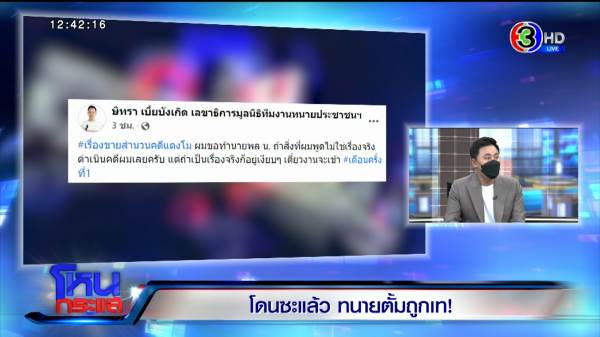 รายการโหนกระแสวันที่ 8 มี.ค. 65 ดำเนินรายการโดย “หนุ่ม กรรชัย กำเนิดพลอย” ผลิตในนามบริษัท ดีคืนดีวัน จำกัด ออกอากาศทุกวันจันทร์-ศุกร์ เวลา 12.35 น. ทางช่อง 3 กดเลข 33 สัมภาษณ์ “ทนายตั้ม ษิทรา เบี้ยบังเกิด” กรณีที่ถูก “นางภนิดา ศิระยุทธโยธิน” แม่ “แตงโม นิดา พัชรวีระพงษ์” ส่งจดหมายขออย่ายุ่งเกี่ยวกับคดีแตงโม และถูก “ต่อย ดายศ เดชจบ” พี่ชายแตงโม เทแบบไม่ทันตั้งตัวหลังเข้ามาขอให้ทนายตั้มช่วยสืบหาความจริงเรื่องน้องสาว
