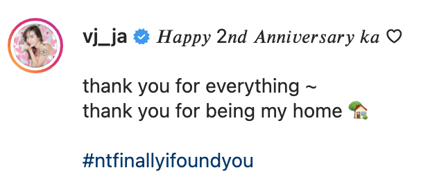 เรียกได้ว่านานทีปีหน “วีเจจ๋า” ณัฐฐาวีรนุช ทองมี จะโพสต์ภาพคู่กับสามี”ตุ๊” ธนานันต์ เอื้ออารักษ์ ล่าสุด เจ้าตัวโพสต์ภาพคู่ ฉลองครบรอบแต่งงาน 2 ปี พร้อมข้อความ @ vj_ja ระบุว่า…