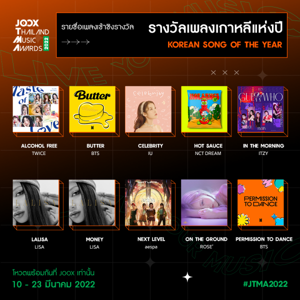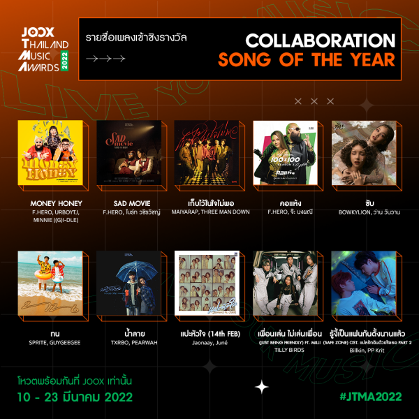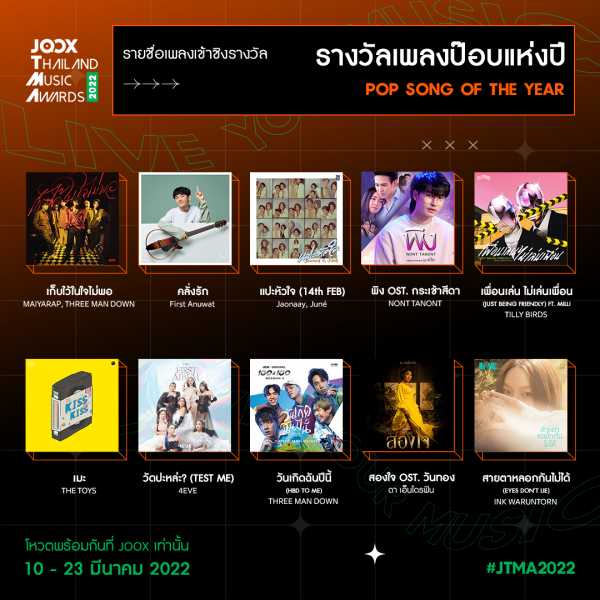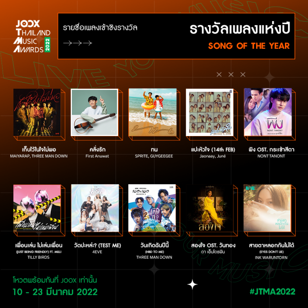 รายชื่อศิลปิน และเพลงที่ได้รับการเสนอเข้าชิงรางวัล JTMA 2022
