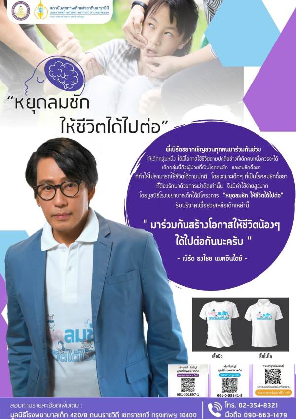 เบิร์ด ธงไชย แมคอินไตย์ เชิญชวนคนไทยร่วมบริจาคเพื่อช่วยเหลือผู้ป่วยลมชัก ผ่านโครงการ “หยุดลมชัก ให้ชีวิตได้ไปต่อ” จัดโดย มูลนิธิโรงพยาบาลเด็ก เพื่อร่วมสมทบทุนค่าผ่าตัดให้ผู้ป่วยลมชักดื้อยา ให้มีโอกาสหายขาด และมีโอกาสใช้ชีวิตปกติ ซึ่งโรคลมชัก เป็นโรคทางประสาทที่พบบ่อยในเด็กไทย โรคนี้สามารถส่งผลต่อการใช้ชีวิตของผู้ป่วยอย่างมาก ทั้งด้านพัฒนาการของเด็ก การเรียนและการใช้ชีวิตประจำวัน อีกทั้งอาการชักที่มักเกิดอย่างฉับพลันอาจนำไปสู่อุบัติเหตุและการบาดเจ็บที่รุนแรง นอกจากนี้อาการของโรคลมชักในเด็กอาจขัดขวางพัฒนาการตามช่วงวัยและตัดโอกาสที่สำคัญของเด็ก