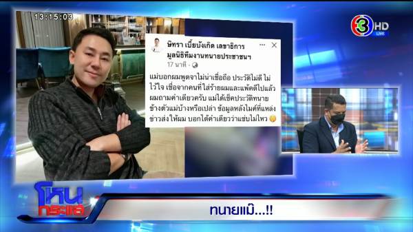 เรื่องคุณแม่ที่มีการติดต่อเข้าไปในรายการคุณปอเปี๊ยะ รายการคุยทะลุดราม่า แม่บอกว่าไม่ตกใจเรื่องนี้ เป็นเรื่องปกติที่มีคนเป็นหนี้ พ่อแตงโมยังมีหนี้ และไม่อยากให้ไปออกรายการโหนกระแสด้วย ทำไม เขาเกลียดผมเหรอ หรือเจ็บเพราะรายการนี้?