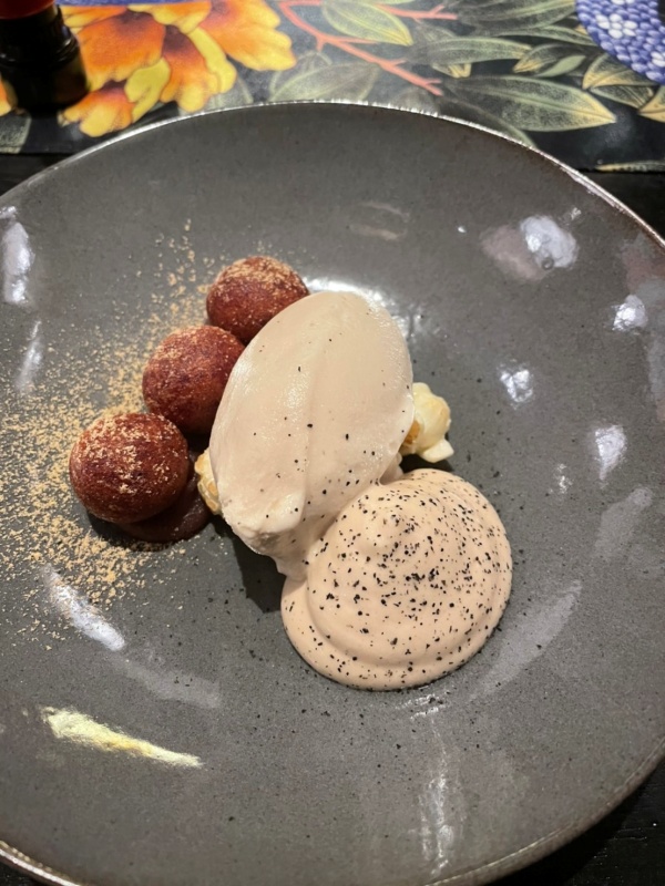 6. เมนูไฮไลท์ A perfect combination – crispy chive pancakes, scallop, pickled chilies, yolk and mushroom foam ความลงตัวของเมนูกุ้ยช่ายที่ใช้วัตถุดิบไข่แดงสดของพอลดีย์