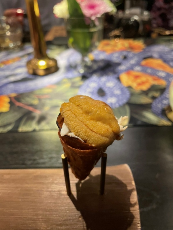 2. Those look delicious ขนมเบื้องโคน, crab salad, uni, ikura and pickled seaweeds