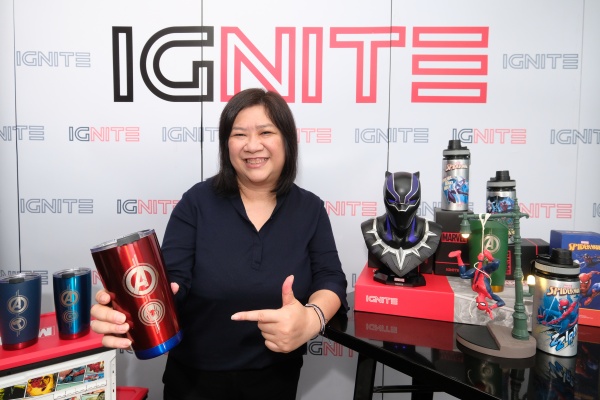 “ในปีนี้ IGNITE ได้สร้างปรากฏการณ์อีกครั้งกับคอลเลกชั่นเปิดตัวตอนต้นปีกับแก้วเก็บอุณหภูมิจากตัวเอกในทีม Avengers อันได้แก่ Loki, Thor, Black Panther, Captain America, Iron Man, Spiderman พร้อมพิเศษสุดกับการออกแก้วเพื่อฉลองไปกับหนังของ Dr. Strange ที่กำลังจะออกฉายในช่วงกลางปีนี้ ทั้งยังมีสินค้าในกลุ่ม 3D ที่ขึ้นรูปมาแล้วแฟน ๆ ห้ามพลาด เพราะไม่เพียงแต่จะเป็นชิ้นงานขึ้นรูปเป็นโมเดลสวย ๆ แต่ยังสามารถนำไปใช้ประโยชน์เพิ่มเติมได้อย่าง โคมไฟ Black Panther หรือโคมไฟ Spider Man ซึ่งเหล่าสาวกของมาร์เวลห้ามพลาดเป็นอันขาด”