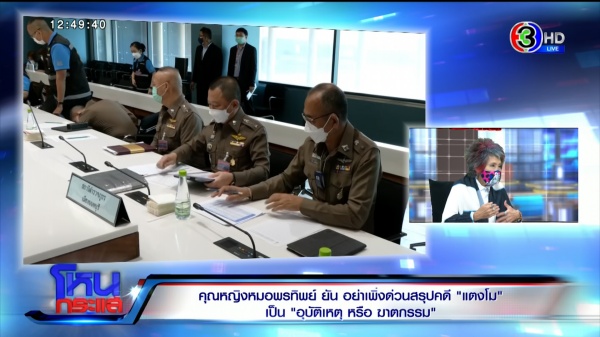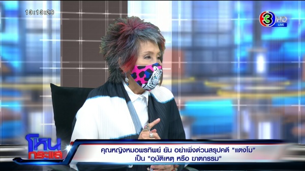 “แล้วแต่แปล แต่เจตนาวันนั้นที่บอก เป็นการบอกว่าคุณหมอนิติเวชที่ได้ทำการตรวจจนถึงขนาดนั้น เราชื่นชม สิ่งนี้ก็อยู่ที่พนักงานสอบสวนจะคุยกับคุณหมอผู้ตรวจ มันไม่ใช่ความลับในคดีนะคะ มันคือความจริง ถ้าเป็นความลับในคดีมันจะเป็นอีกอย่างนึง ซึ่งตอนนี้ต้องบอกว่ามันปนกัน ที่บอกว่าเอาเรื่องในสำนวนมาพูด ซึ่งไม่เกี่ยว ความจริงคือความจริง อย่าลืมว่าเมืองนอกมีเรื่องสิทธิที่ที่ควรจะรับรู้ ทุกคนจะรู้ได้ในเรื่องพวกนี้”