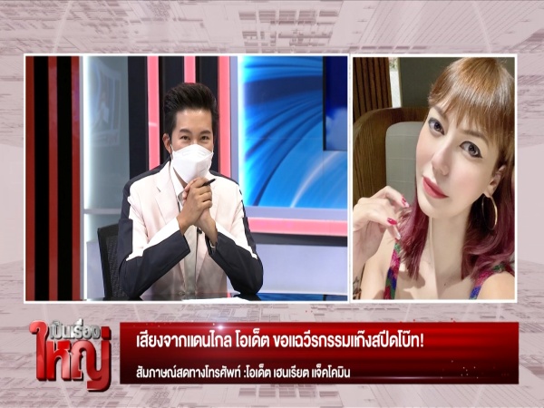 โอเด็ต : อันนี้หนูไม่สามารถพูดได้นะคะ คุณแม่แตงโมเขาจะมาฟ้องหนู ล่าสุดนี่เลยค่ะ so they wanna sue me หนูก็บอกว่า why do you wanna sue me? do you have money to sue me? คุณแม่จะมาฟ้องหนูเพราะอะไรคะ เป็นคุณทนายที่เขาโทรมาหาหนูค่ะ