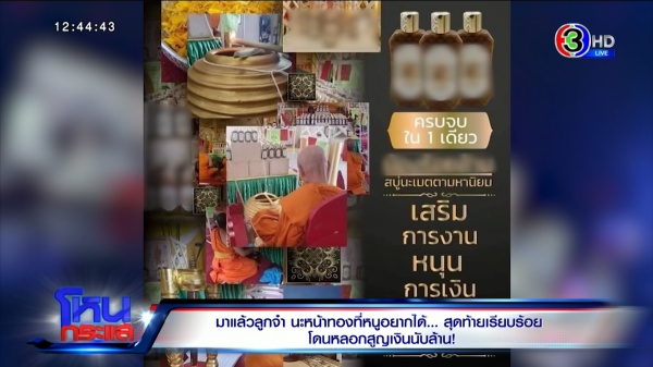 แม่รัตน์ : ผู้หญิงค่ะ เราก็โอเค เพราะเราก็สนใจเรื่องการสวดมนต์ เลยติดต่อไปขอดูดวงกับอาจารย์คนนี้ โดยดูดวงผ่านโทรศัพท์ที่ราคา 999 โอนก่อนดูค่ะ
