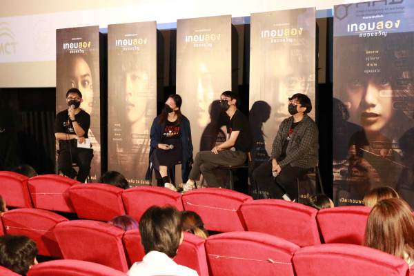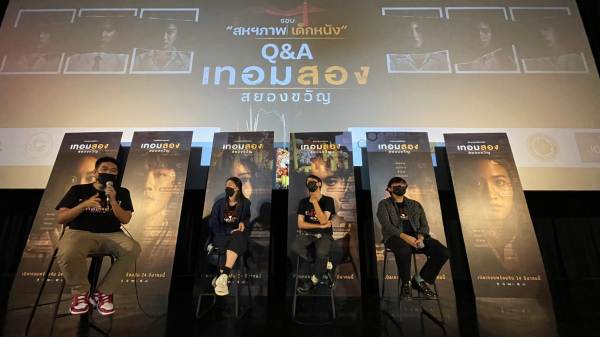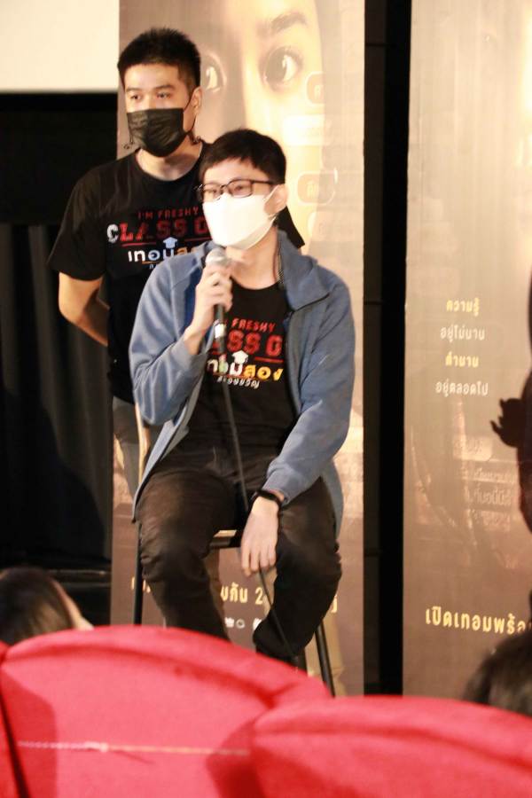 โดยในครั้งนี้หลังจากชมภาพยนตร์ “เทอมสอง สยองขวัญ” จบแล้ว ยังมีกิจกรรม Q&A ร่วมพูดคุย ถามตอบ เจาะลึกหลากหลายเกร็ดความรู้ภาพยนตร์และแง่มุมการทำงานภาพยนตร์เรื่องนี้จากประสบการณ์ตรงของ 3 ผู้กำกับใหม่น่าจับตาที่ผ่านงานกำกับโฆษณา มิวสิกวิดีโอ และซีรีส์มาอย่างโชกโชน จนก้าวเข้าสู่การกำกับภาพยนตร์เป็นครั้งแรกอย่าง “พลอย-ภัทรภร วีระศักดิ์วงศ์” (เชียร์ปีสุดท้าย), “ก๋วยเตี๋ยว-จตุพงศ์ รุ่งเรืองเดชาภัทร์” (เดอะซี) และ “ต้น-เอกภณ เศรษฐสุข” (ตึกวิทย์เก่า) พร้อมคู่หูทีมเขียนบทอย่าง “บูรณ์-ธนบูรณ์ นันทดุสิต” และ “เบียร์-เอกราช มอญวัฒ” ซึ่งมอบทั้งสาระและความบันเทิงแก่น้อง ๆ ด้วยบรรยากาศที่เต็มไปด้วยความเป็นกันเองและสนุกสนานกันอย่างเต็มที่