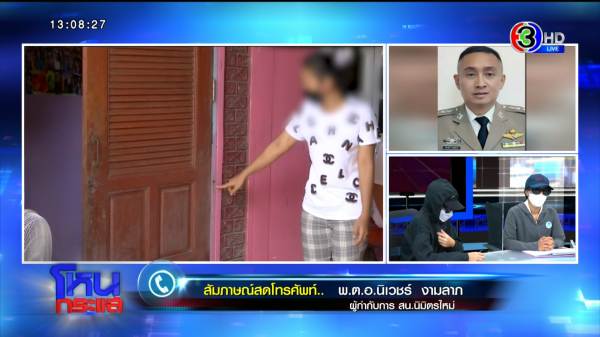 พ.ต.อ. นิเวชร์ : เราก็ให้เจ้าหน้าที่สายตรวจ วนไปตรวจเป็นประจำ ที่จะมาข่มขู่อีกก็คิดว่าไม่น่า เพราะฝ่ายผู้ก่อเหตุก็รู้ตัวแล้ว ยิ่งมาออกรายการอย่างนี้ ดูแล้วน่าจะหลบหนีช่วงนี้ แต่ไม่เป็นไร ทางเราได้รวบรวมพยานหลักฐานไว้ตรวจอยู่แล้ว เตรียมออกหมายเรียก และขออนุมัติหมายจับเร็ว ๆ นี้