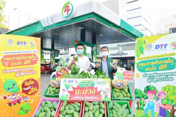ด้านนายรังสรรค์ พวงปราง ผู้ช่วยกรรมการผู้จัดการใหญ่ บริษัท พีทีจี เอ็นเนอยี จำกัด (มหาชน) กล่าวว่า พีที มีความยินดีให้การสนับสนุนกรมการค้าภายในในการดำเนินการกระจายผลผลิตภายใต้มาตรการช่วยเหลือเกษตรกรในครั้งนี้ สำหรับมะม่วงมัน พันธุ์ฟ้าลั่น และเพชรบ้านลาด จะเริ่มแจกตั้งแต่วันนี้ 31 มี.ค.ไปจนถึง 2 เม.ย. หรือจนกว่าของจะหมด กว่า 200 สาขา ในกรุงเทพ และปริมณฑล รวม 6 จังหวัด ได้แก่ นนทบุรี นครปฐม ปทุมธานี สมุทรปราการ และสมุทรสาคร และสำหรับ “ส้มลิ้ม” จะเริ่มแจกตั้งแต่วันที่ 8 ถึง 12 เม.ย. 65 หรือจนกว่า ของจะหมด กว่า 600 สาขา ใน 73 จังหวัดทั่วประเทศ โดยเห็นว่าความร่วมมือครั้งนี้จะสามารถช่วยเหลือเกษตรกรผู้ปลูกมะม่วงได้อย่างมาก