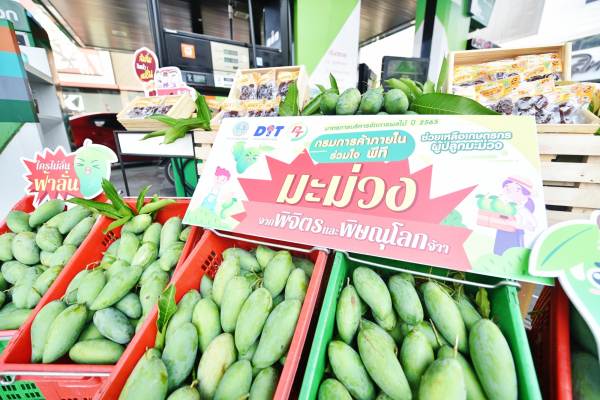 โดยในวันนี้ (31 มี.ค.65) กรมฯ ได้ร่วมกับสถานีบริการน้ำมัน พีที ในการช่วยเหลือเกษตรกรกระจายผลผลิตมะม่วงมัน พันธุ์ฟ้าลั่น และเพชรบ้านลาด เกรดคละจากกลุ่มเกษตรกร จ.พิจิตร และพิษณุโลก ปริมาณรวม 500 ตัน โดยรับซื้อในราคา 5 บาท ซึ่งเป็นราคานำตลาด (ราคาตลาดอยู่ที่ 3-4 บาท) คงที่จากปี 2564 เพื่อนำมามอบเป็นของสมนาคุณให้แก่ผู้ใช้บริการในปั๊มน้ำมัน “เป็นผลสด” และอีกส่วนหนึ่งจะนำไปแปรรูปเป็นมะม่วงกวน หรือที่เรียกกันว่า “ส้มลิ้ม” จัดเป็นของสมนาคุณอีกครั้ง ให้แก่พี่น้องประชาชนที่เดินทางกลับภูมิลำเนาหรือท่องเที่ยว และแวะเติมน้ำมันในช่วงเทศกาลสงกรานต์ เพื่อให้มั่นใจว่าเกษตรกรจะมีช่องทางการจำหน่ายตลอดฤดูกาลผลิต โดยกรมฯ ช่วยสนับสนุนค่าบริหารจัดการ