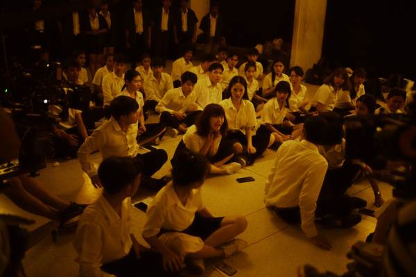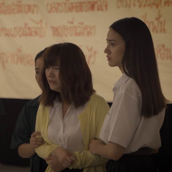 “ตอนนั้นเราถ่ายทำกันยาวนานมีนักแสดงเข้าฉากหลายคน แล้วเป็นฉากที่เราต้องร้องเพลงเชียร์ อยู่ ๆ ก็มีกลิ่นน้ำอบไทยลอยมาสักพักเสียงหมาหอนก็ดัง คือพอถาม ๆ กันหลายคนได้กลิ่น แต่ตอนนั้นน้องมิวสิคเขาเห็นขาคนทะลุลงมา ซึ่งจริง ๆ ที่นั่นก็มีประวัติคนตายที่ชั้นบน จนน้องนั่งร้องไห้หนัก เราเลยเดินไปคุยกับน้องตรงที่พักบันไดหน้าห้อง แต่จู่ ๆ เราก็รู้สึกว่ามีเงาคนยืนดูเราตรงชั้นสอง เลยหันหน้าไปพร้อมกัน แล้วแก้วน้ำที่ตั้งอยู่ก็ตกลงพื้นเฉยเลย แต่มันแปลกที่แก้วหมุน ๆ กลับตั้งขึ้นมาเอง ตอนนั้นคิดอะไรไม่ออก พวกเราวิ่งกันออกมาจากตรงนั้นเลย หลังจากนั้นก็ยังมีทีมงานที่เจอเรื่องราวแปลก ๆ มาพูด เล่าให้เราฟัง ตอนนั้นกลัวมาก แต่ก็อยากทำงานให้เสร็จถึงแม้บรรยากาศจะหลอนมากก็ตามครับ”