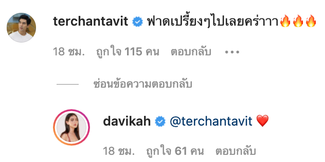 งานนี้ไม่พลาดที่เหล่าแฟนคลับมากมายจะเข้ามาแสดงความคิดเห็นเป็นจำนวนมาก รวมถึงเพื่อน ๆ ในวงการและที่สำคัญหนุ่มเต๋อเองก็เข้าคอมเม้นท์เช่นกัน โดยระบุว่า…ฟาดเปรี้ยงๆไปเลยคร่าาา🔥🔥🔥