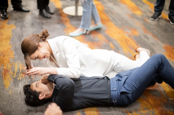 โดยฉากที่หยิบมาฝากกันในวันนี้เป็นตอนที่ ดร.ปาริฉัตร(แพทริเซีย ธัญชนก กู๊ด) ไลฟ์โค้ชชื่อดัง พูดเพื่อสร้างแรงบันดาลใจ ไปเป็นวิทยากรอบรมพนักงานให้กับบริษัทของ พายุ (เกรท วรินทร ปัญหกาญจน์) ระหว่างนั้นตฤณ(ท็อป จรณ โสรัตน์) ผู้บริหารของโรงแรม เห็นปาริฉัตรแล้วถูกใจ เข้ามาทักทาย แต่แล้วเกิดอุบัติเหตุลื่นล้มกันไปมา ต่างคนต่างมองหน้ากัน