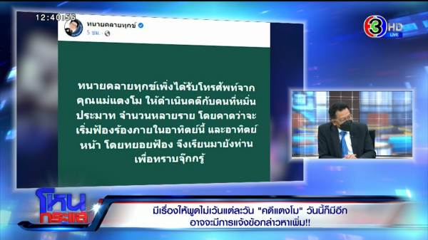 รายการโหนกระแสวันที่ 6 เม.ย. 65 ดำเนินรายการโดย “หนุ่ม กรรชัย กำเนิดพลอย” ผลิตในนามบริษัท ดีคืนดีวัน จำกัด ออกอากาศทุกวันจันทร์-ศุกร์ เวลา 12.35 น. ทางช่อง 3 กดเลข 33 สัมภาษณ์ “ทนายเดชา กิตติวิทยานันท์” กรณีจะพา “แม่ภนิดา ศิระยุทธโยธิน” คุณแม่ “แตงโม นิดา พัชรวีระพงษ์” ไปพบพนักงานสอบสวน จะมีการแจ้งข้อหาเพิ่มเติมให้บุคคลบางคนที่อยู่บนเรือ รวมทั้งคุณแม่ไม่ยอมแล้ว จะดำเนินคดีกับคนบางคนที่กล่าวหา ด่าว่าหน้าเงิน หิวเงิน ทำให้ลูกตาย พัวพันถึง “บังแจ็ค” ที่เอาผ้าผืนนึงมาแล้วระบุว่าเป็นผ้าผูกเอวของแตงโมที่หายไป โดยมีการติดต่อ “ส.ส.เต้ มงคลกิตติ์” จน “ทนายตั้ม ษิทรา เบี้ยบังเกิด” ออกมาสวน กลายเป็นศึกวิวาทะ