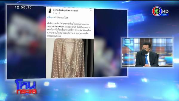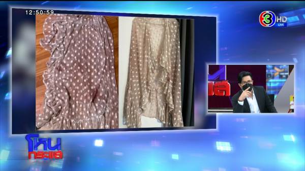 เมื่อคืนบังแจ็คโทรหาทีมงานผม แล้วพูดบางอย่างว่าเขามีหลักฐาน มีคลิป ผมก็บอกว่าผ้านี้ไม่ใช่มั้ง บังแจ็คไปซื้อจากลาซาด้าหรือเปล่า เขาบอกว่าไม่หรอก ขนาดไทยรัฐไปหาตามสำเพ็งยังไม่มีเลย เป็นผ้าผืนนั้นจริงๆ ใครมาโทรศัพท์ ผมจะเปิดให้ดู ผมเข้าลาซาด้าให้ดูตอนนี้เลย ลองเข้าไปแล้วพิมพ์ว่ากระโปรงคลุมชายหาดลายจุด มันจะขึ้นมาเลย ผ้าเหมือนแตงโมมั้ย เหมือนที่บังแจ็คมาโชว์มั้ย เอาภาพที่บังแจ็คโชว์กระโปรงหน่อย ที่บอกว่าหากันไม่ได้เนี่ย เป็นคลิปที่เขาใส่เลย แล้วบอกว่าเป็นผ้าแตงโมที่หลุดไป พี่เดชาว่าไง เขาบอกว่าไปหาดูสำเพ็งก็ไม่มี ลาซาด้าก็ไม่มี?