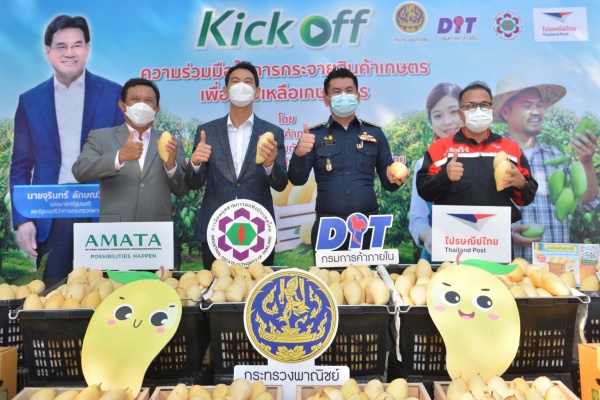 โดยในวันนี้ (8 เมษายน 65) เป็นการ Kick off ความร่วมมือระหว่างกรมการค้าภายใน การนิคมแห่งประเทศไทย และไปรษณีย์ไทย โดยได้เปิดจุดจำหน่ายผลไม้มะม่วง พันธุ์น้ำดอกไม้ จากจังหวัดพิจิตรและจังหวัดพิษณุโลก ณ นิคมอุตสาหกรรมอมตะซิตี้ จังหวัดชลบุรี
