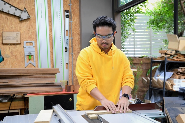 “กิจกรรมในวันนี้จริง ๆ มาจากหลายสิ่งหลายอย่างครับ ช่วงสถานการณ์โควิดได้อยู่บ้านทำให้อยากหางานอดิเรกทำ เราก็ไปเรียนจริงจังเลยเกี่ยวกับงานไม้ เริ่มจากลองทำเล่น ๆ ชิ้นแรก ตั้งโชว์ลงรูปดันมีคนมาขอซื้อ ติดใจเริ่มสนุกก็เลยเกิดเป็นชิ้นที่สองสามสี่ตามมา พอทำแล้วมันมีทั้งรายได้ และมีทั้งความสุข ก็ทำจริงจังเลยครับ ซึ่งผมรับออกแบบครีเอทงานให้ด้วย เช่นมีชิ้นเดียวในโลก เพราะทำอีกครั้งนึงมันจะไม่เหมือนเดิมแล้วนะครับ (หัวเราะ) และก็สามารถใช้งานได้จริงๆ เปิดเป็นสตูดิโอชื่อ A Dear in the Woods ยังไงลองเข้ามาดูในไอจีได้เลยครับ ส่วนจุดเปลี่ยนอีกเรื่องก็คงเป็นน้ำหวานเองด้วยแหล่ะ พอเขารู้ว่าเรามีงานไม้ทำที่บ้าน ไม่ต้องออกไปซิ่งรถวิบากออกต่างจังหวัดอันตรายเหมือนแต่ก่อน น้ำหวานเขาก็สบายใจ แต่พอเขามาเห็นเราทำงานไม้ชิ้นใหญ่ ๆ บางชิ้นสามสี่เมตร เขาก็ยังห่วง ๆ อยู่ เพราะมันก็ดูอันตรายไม่แพ้กันเลย แต่อย่างน้อยก็ได้เจอหน้ากันบ่อยขึ้น เพราะจากห้องนอนก็ลงมาทำงานด้านล่างได้เลย ส่วนกิจกรรมดำน้ำ เวลาออกทริปผมจะไปคนเดียว แล้วต้องหายจากโลกนี้ไปเป็นอาทิตย์ กลับมารอบนี้ จึงเทรนน้ำหวานเพื่อจะได้ไปออกทริปด้วยกัน เขาไปด้วยจะได้ไม่มีปัญหาครับ”