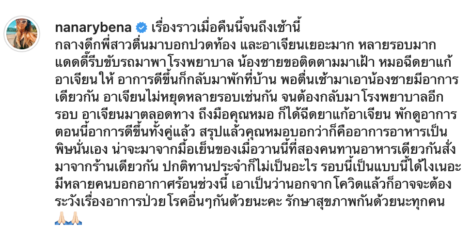 “นานา ไรบีนา” เตือนหลัง “บีน่า – บรู๊คลิน” อาเจียนเยอะจนต้องเข้า รพ.