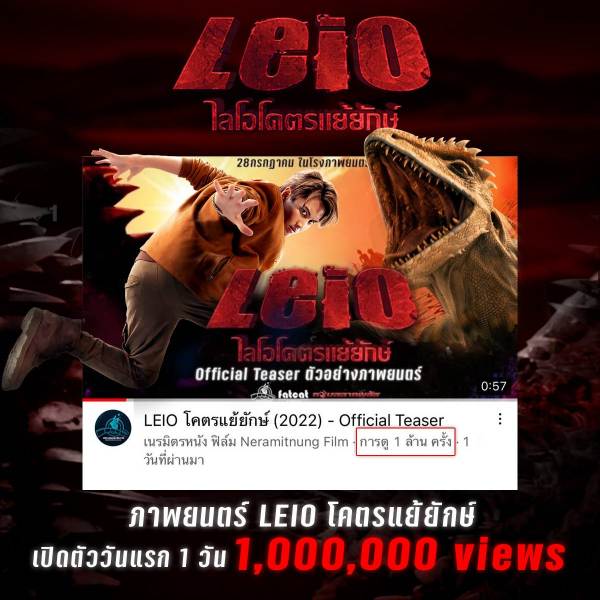 Leio ไลโอโคตรแย้ยักษ์ ปล่อยทีเซอร์ “1วัน 1 ล้านวิว” ภาพยนตร์แอคชั่นแฟนตาซี สัตว์ประหลาดแย้ยักษ์สัญชาติไทย