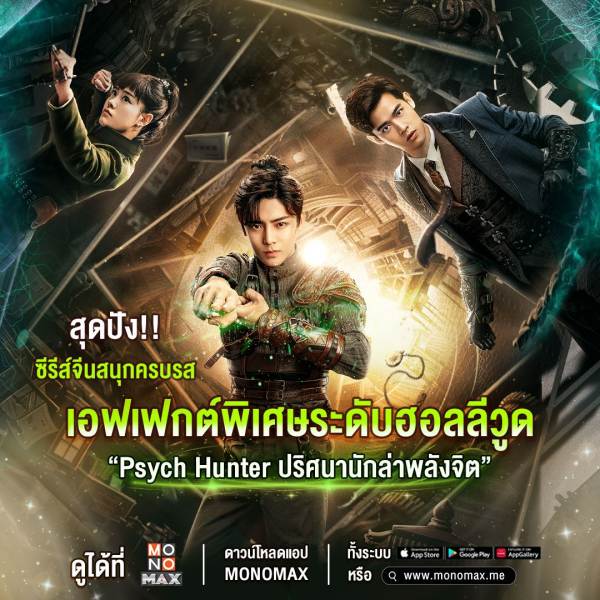 “MONOMAX” (โมโนแมกซ์) ผู้นำดูหนังออนไลน์แบบถูกลิขสิทธิ์ ในเครือ โมโน เน็กซ์ เอาใจคอซีรีส์แดนมังกรสายแฟนตาซี – สืบสวนสอบสวน อลังการงานเอฟเฟกต์พิเศษ ที่ต่างเตรียมนับวันรอชม ซีรีส์ “Psych Hunter ปริศนานักล่าพลังจิต” เรื่องราวของ เจียงซั่ว ที่ตื่นมาพบว่าตัวเองสูญเสียความทรงจำ เขามีเพียงวิชาอ่านใจคนและศาสตร์ฮวงจุ้ยที่ฝังอยู่ในควาทรงจำ นับแต่นั้นเจียงซั่วก็อาศัยอยู่กับคณะกายกรรมและทำอาชีพค้าขายบ้านร้าง แต่ไม่นานก็เกิดเหตุประหลาด เมื่อลูกค้าที่มาซื้อบ้านถูกพบกลายเป็นศพถูกฆาตกรรมต่อเนื่องติดต่อกันถึง 3 ราย เจียงซั่ว จึงกลายเป็นผู้ต้องหาในคดีฆ่าต่อเนื่องอย่างเลี่ยงไม่ได้ เขาถูกตามล่าโดย หมอฉินเชิง และรองสารวัตรหยวนมู่ชิง เพื่อพิสูจน์ความบริสุทธิ์ของตัวเองเจียงซั่วจึงตามหาร่องรอยคนร้ายจนได้พบเบาะแสของฆาตกรตัวจริงนามว่าลั่วจื่อ ชายลึกลับผู้ทิ้งป้ายปริศนาไว้ว่าเจียงซั่วจะต้องตายในวันที่ 15 ตุลาคม!!!