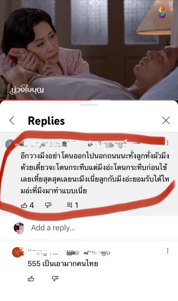 งานนี้แฟนละครคงอินจัด ขอคอมเมนต์เดือดระบายความในใจผ่านคลิปไฮท์ไลท์ ละครบ่วงใบบุญในยูทูปช่อง8 สาปแบบแซ่บ ๆ ว่า “ อีกวางมึงอย่าเดินออกไปนอกถนนนะทั้งลูกทั้งผัวมึงด้วย เดี๋ยวจะโดนกระทืบแต่มึงอะโดนกระทืบก่อนใครเ…ยสุดเลยนะมึงเนี่ย ลูกมึงอะยอมรับได้ไหม ที่มึงมาทำแบบนี้” คุณพระช่วย!! โกรธแค้น กันอะไรเบอร์นี้ ก็ไม่รู้ว่าบทของสาวกวาง จะแรงเกินต้านไปไหม แต่ที่แน่ ๆ สาวกวางแสดงออกมาได้ตีบทแตกกระจุย จนคนด่ากันทั่วบ้านทั่วเมืองกันเลยทีเดียว