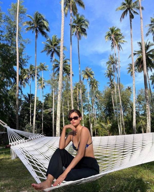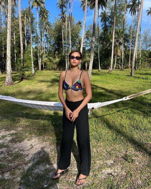 เช่นเดียวกับ นางเอกสาว ต้าเหนิง-กัญญาวีร์ สองเมือง ที่มาพักผ่อนริมทะเลโดยนำชุดว่ายน้ำวันพีซเกาะอกสีส้ม แมตช์กับกางเกงขาบานทรงโอเวอร์ไซส์ ซึ่งหากนำเสื้อสูทมาใส่ก็จะได้ลุคสมาร์ทสำหรับไปทำงานได้เลย