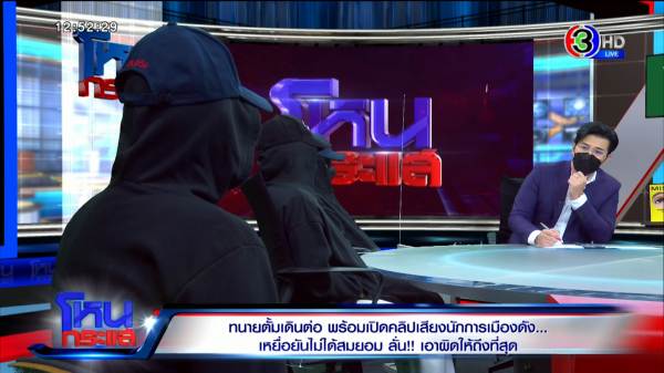 รายการโหนกระแสวันที่ 18 เม.ย. 65 ดำเนินรายการโดย “หนุ่ม กรรชัย กำเนิดพลอย” ผลิตในนามบริษัท ดีคืนดีวัน จำกัด ออกอากาศทุกวันจันทร์-ศุกร์ เวลา 12.35 น. ทางช่อง 3 กดเลข 33 สัมภาษณ์ เอ-บี-ซี (นามสมมติ) เหยื่ออดีตรองหัวหน้าพรรค มาพร้อมทนายตั้ม ษิทรา เบี้ยบังเกิด พร้อมโฟนอิน “ดี” (นามสมมติ) เหยื่ออีกรายกลางรายการ