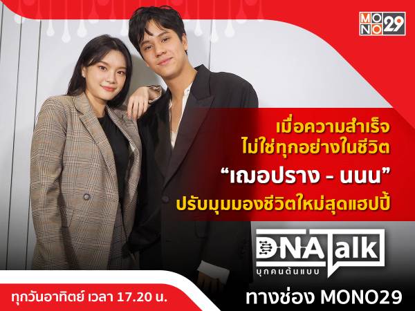 ติดตามความสำเรความสำเร็จของทั้งคู่ได้ในรายการ “DNA TALK บุกคนต้นแบบ” วันอาทิตย์ที่ 24 เมษายนนี้ เวลา 17.20 น. ทางช่อง MONO29