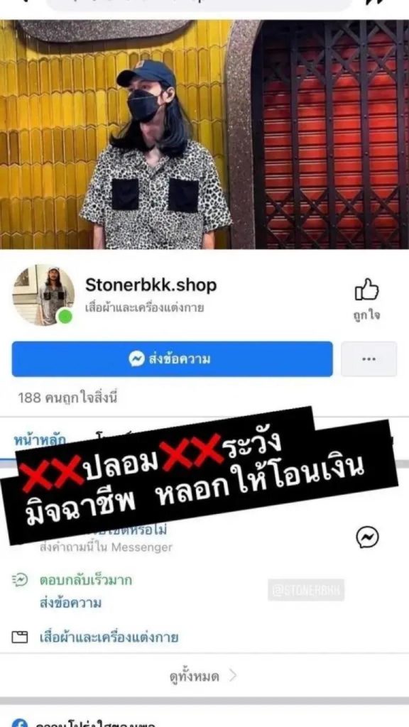 แต่ทว่าก็ยังเจอมิจฉาชีพ ทำเพจปลอม นำแบบเสื้อมาวางจำหน่ายบนโลกออนไลน์โดยไม่ได้รับอนุญาต ทำให้ “เบิร์ด” ต้องออกมาโพสต์เตือน “เพจปลอมนะครับ มิจฉาชีพครับ ระวังกันด้วย อย่าโอนเงิน ปลอมอีกแล้ว-ปลอม มิจฉาชีพ พวกขโมยงานคนอื่น…”