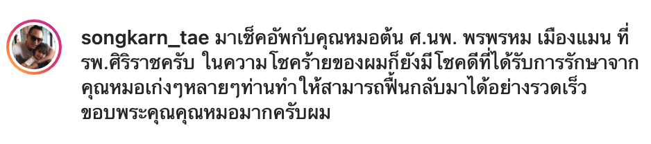 ขอบพระคุณคุณหมอ จีระสุข จงกลวัฒนา เป็นอย่างยิ่ง จากกระดูกซี่โคร่งหัก 2 ที่ ไหปลาร้าเลื่อน ปอดทะลุ และกล่องเสียงแตก ได้คุณหมอกรุณาช่วยรักษาเลยได้กลับมาใช้ชีวิตใหม่ครับ 🙏🏼🙏🏼❤️