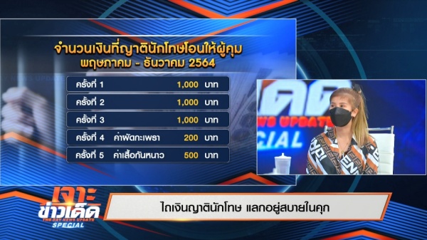 อีกหนึ่งประเด็นร้อนที่ถูกเฝ้าจับตา สำหรับกรณี “ไถเงินญาตินักโทษ แลกอยู่สบายในคุก” เกิดเป็นข้อพิพาททางสังคมถึงความไม่โปร่งใสของเจ้าหน้าที่ ล่าสุดผู้ประกาศข่าว “บ๊อบ-ณัฐธีร์ โกศลพิศิษฐ์” จากรายการ “เจาะข่าวเด็ด สเปเชียล” (The Day News Update Special) เชิญผู้เสียหายเจ้าของเคส “คุณบุ้งกี๋” หลังออกมาตีแผ่ในรายการ หลังญาติร้องถูกผู้คุมเรือนจำไถเงินเป็นค่าดูแลนักโทษให้อยู่สุขสบายในคุก แฉมีพฤติกรรมซ้ำซาก ด้านราชทัณฑ์จ่อลงโทษขั้นเด็ดขาด ลดการสร้างความเหลื่อมล้ำในสังคมเรือนจำ งานนี้ยังได้รับเกียรติจาก “ทนายรณณรงค์ แก้วเพ็ชร์” ประธานเครือข่ายรณรงค์ทวงคืนความยุติธรรมในสังคม พร้อมโฟนอินกับอธิบดีกรมราชทัณฑ์ “นายอายุตม์ สินธพพันธุ์” เพื่อหาข้อสรุปที่แน่นอนและชัดเจน