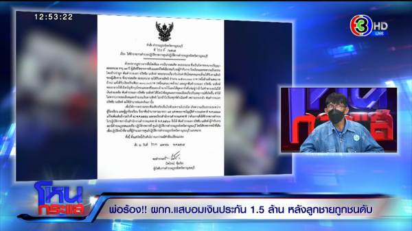 กรณีคุณพ่อคนหนึ่งสูญเสียลูกชาย เหตุถูกตร.ยศผู้กำกับเฉี่ยวชน ต้องได้รับเงินประกันล้านกว่าบาท แต่ผกก.รายนี้ขอมีเอี่ยวจากเงินดังกล่าวด้วย
